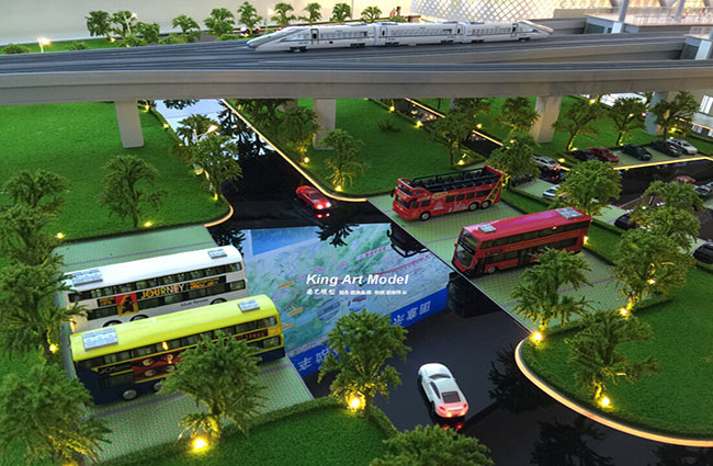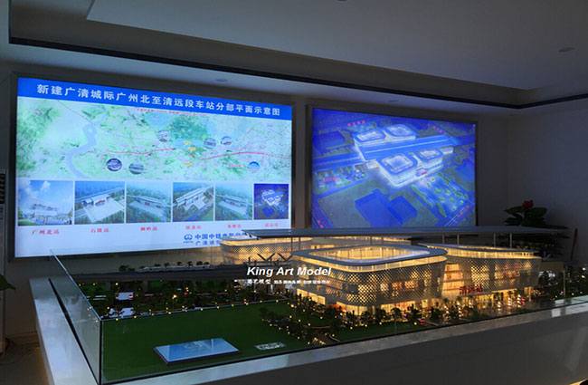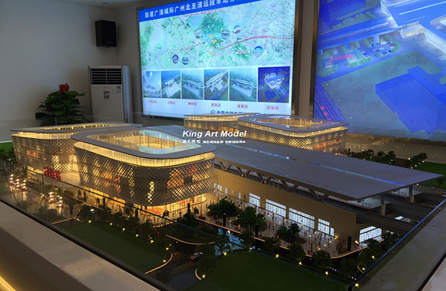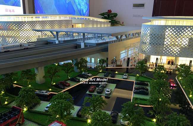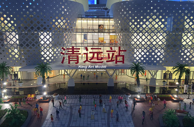 針對于廣清城軌清遠(yuǎn)站項目模型采用了智能升降技術(shù),不僅從沙盤上展示清遠(yuǎn)站和周邊商業(yè)配套的整體規(guī)模,以及升起時,可以清楚的看到車站內(nèi)部的安全設(shè)施,動車行駛動線和人山人海的旅客進(jìn)出站的模擬場景。